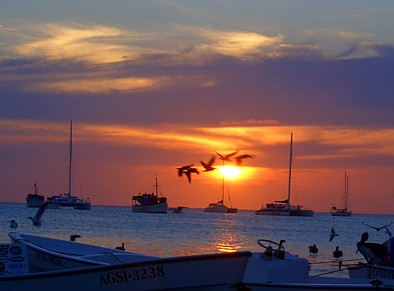 Even into the sunset the Pelicans are the main ( and only ) show in town